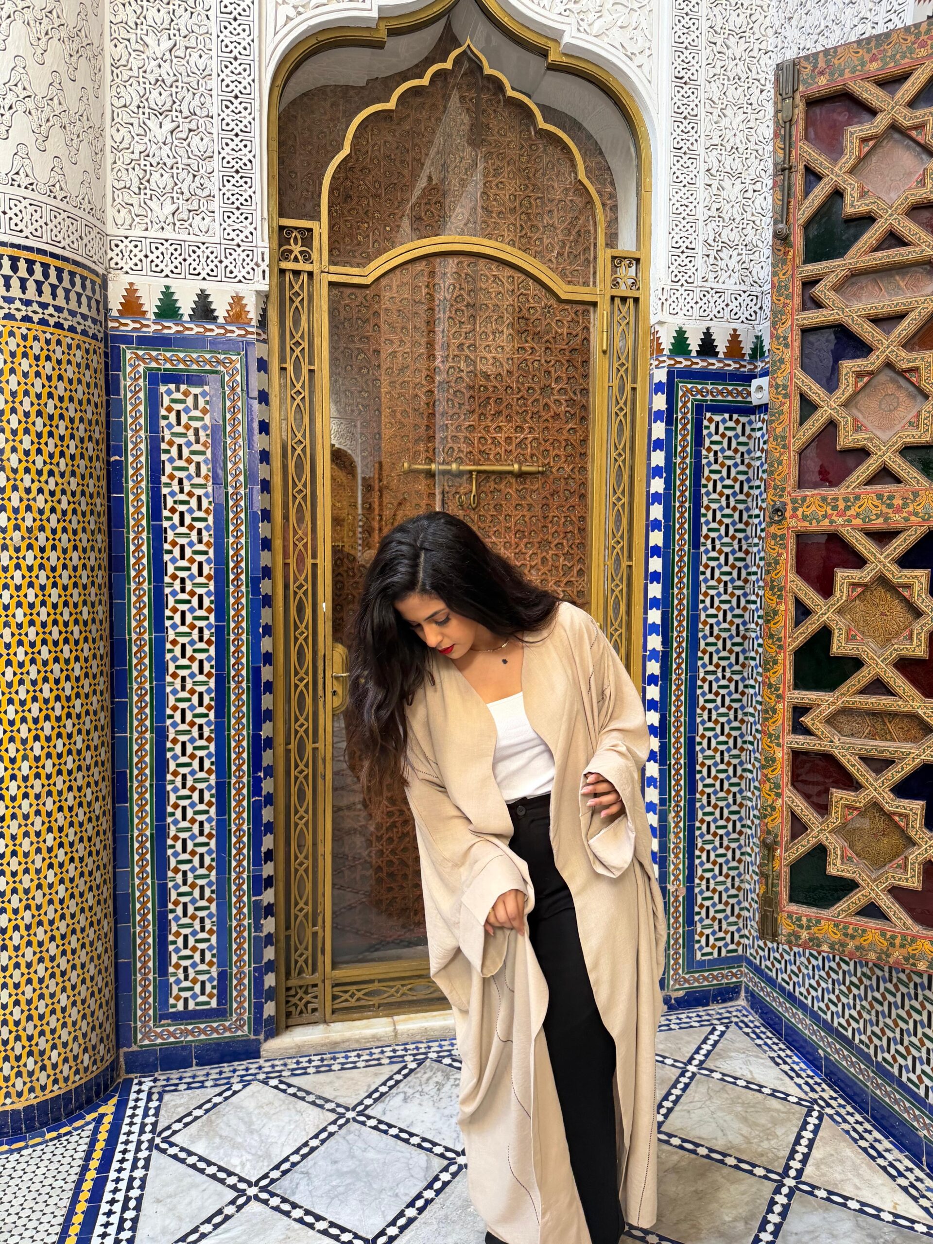 Discover premium abayas designed for the modern modest woman. Luxury fabrics, graceful cuts, and effortless sophistication.